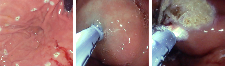 - Ablazione termica superficiale della mucosa mediante APC.